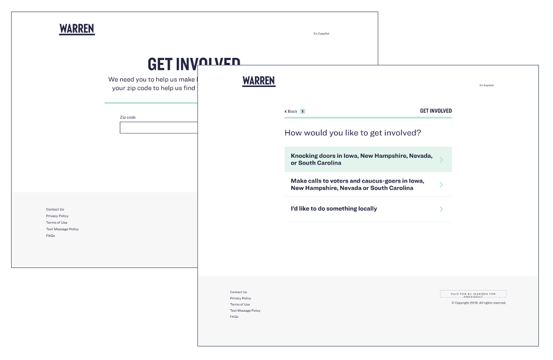 Shifter on the /volunteer page. This page got 12.5k WAU and was responsible for 12% of all call and 15% of all canvassing signups.